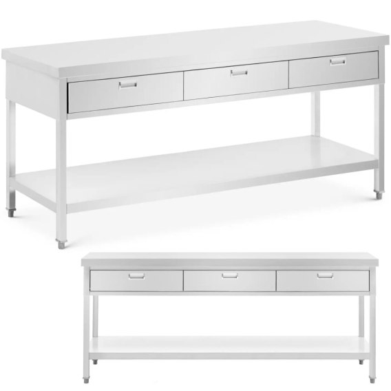 - - Stół roboczy ze stali nierdzewnej z szufladami