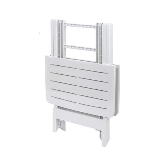 Składany stolik turystyczny wykonany z tworzywa sztucznego. Łatwo się składa, po złożeniu zajmuje niewiele miejsca. Idealnie sprawdzi się w ogrodzie, na balkonie, w domu czy na campingu. Wytrzymała konstrukcja oraz doskonałe wykończenie zapewnia wysoki komfort podczas jego użytkowania.