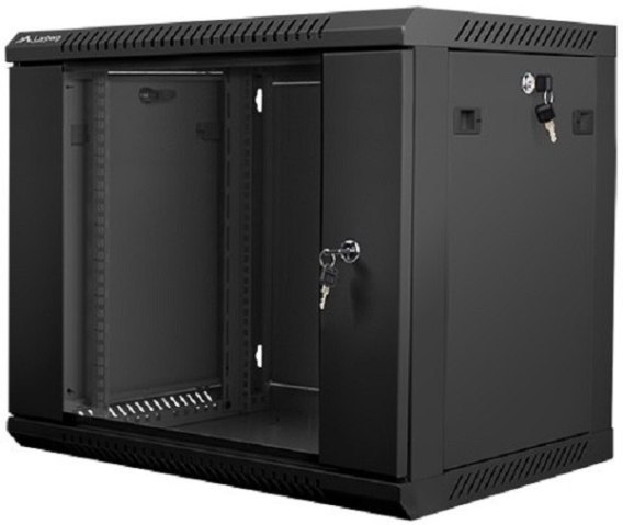 Szafa instalacyjna wisząca 19'' 9U 600X450mm czarna (drzwi szklane)