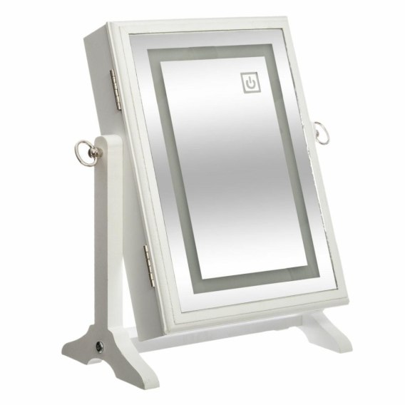 Elegancka szafka na biżuterię z lustrem LED to praktyczne rozwiązanie do przechowywania ulubionych dodatków. Posiada liczne przegródki i haczyki na naszyjniki, pierścionki czy kolczyki, dzięki czemu biżuteria pozostaje zawsze uporządkowana. Wbudowane oświetlenie LED ułatwia dobór akcesoriów i podkreśla stylowy charakter szafki. Stabilna konstrukcja i klasyczny design sprawiają, że doskonale pasuje do sypialni czy garderoby. Zasilana bateriami, 3x LR6 - AA - 1,5 V (brak w zestawie)
