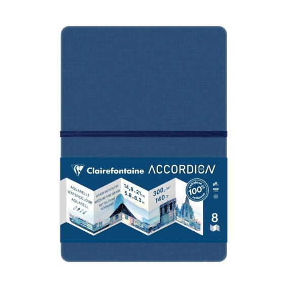Ta książeczka w twardej oprawie zawiera papier akwarelowy, złożony w harmonijkę na 8 części.