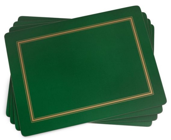 Zestaw czterech stylowych i praktycznych podkładek korkowych, w kolorze szmaragdowym, ozdobionych symetryczną potrójną ramką z kolekcji Emerald Classic.