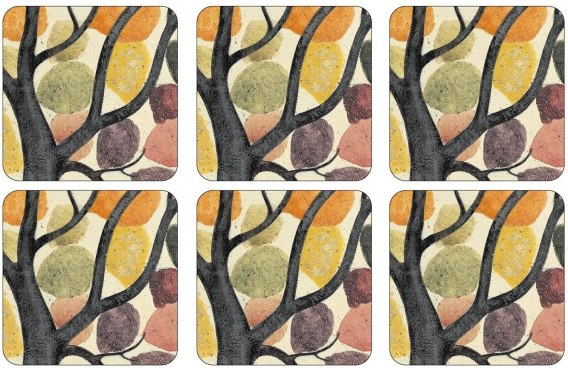 Zestaw sześciu zapewniających wspaniałą kolorystykę podkładek korkowych, ozdobionych pięknie ubarwionymi liśćmi z kolekcji Dancing Branches.