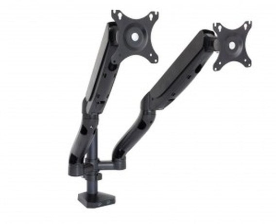 Uchwyt biurkowy przeznaczony do 2 monitorów o przekątnej ekranu od 10 do 32 cali. Maksymalne obciążenie wynosi 9 kg.