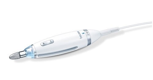Zestaw do manicure i pedicure Beurer MP 62 zawiera dziesięć narzędzi szafirowych, które możne uruchomić w prawo i lewo, podświetlenie LED, obród w prawo i lewo.