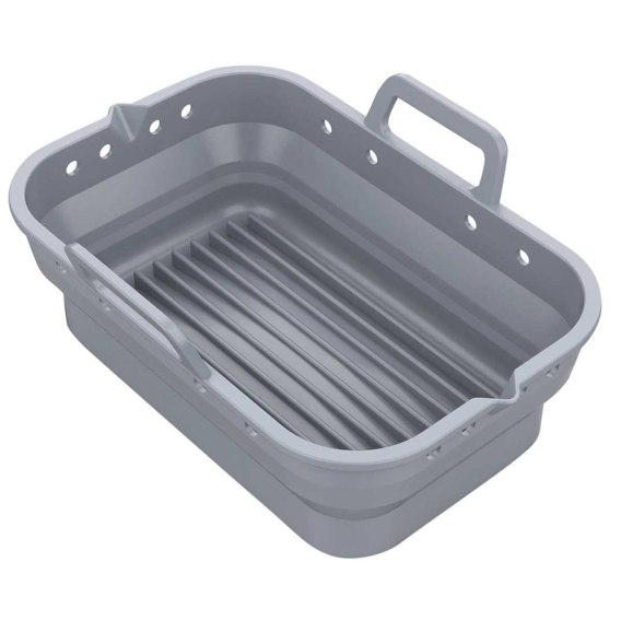 Łatwe czyszczenie i wielokrotne użytkowanie - wkład jest elastyczny, nieprzywierający i można go myć w zmywarce. To koniec z przywierającymi resztkami jedzenia i trudnym czyszczeniem frytkownicy!