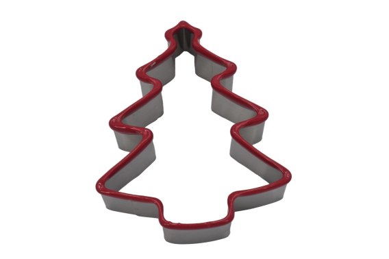 Metalowy wykrawacz do ciastek i pierników w kształcie choinki.