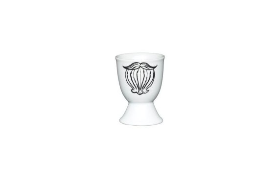 Klasyczny kieliszek do podawania jajka na miękko. Wykonany z wysokiej jakości porcelany kostnej. Z zewnątrz ozdobiony zabawną czarno - białą grafiką wąsa z brodą. Kieliszek na jajko będzie wspaniałym dodatkiem do każdego stołu śniadaniowego.