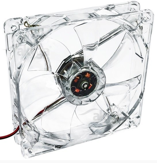 Wentylator o średnicy 120 mm z podświetleniem LED w kolorze zielonym. Napięcie zasilające 12 V, natężenie 0.1 A. Złącze zasilania Molex 4-pin. Łożysko ślizgowe. 7 łopatek wentylatora. Prędkość obrotowa 1 000 obr/min. Przepływ powietrza 38.84 CFM. Natężenie hałasu 20 dBA. Rozstaw śrub montażowych 104.8 mm. Żywotność 30 000 h.