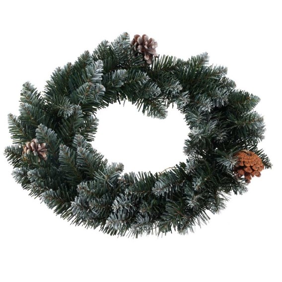 Wianek świąteczny zielony z białymi końcówkami 40 cm