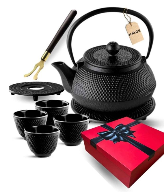 ZAPARZACZ ŻELIWNY DZBANEK CZARNY 900ml Z FILTREM i FILIŻANKAMI PREZENT