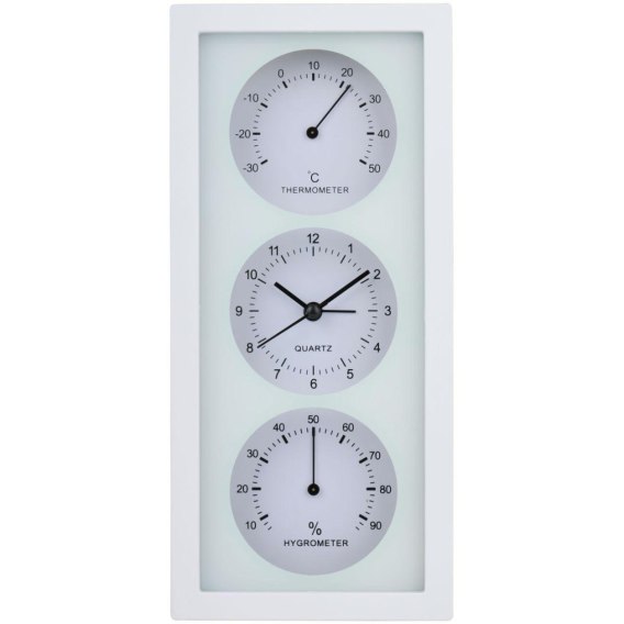• ZEGAR BUDZIK TERMOMETR HIGROMETR 26X5x12CM ARTICASA BIAŁY