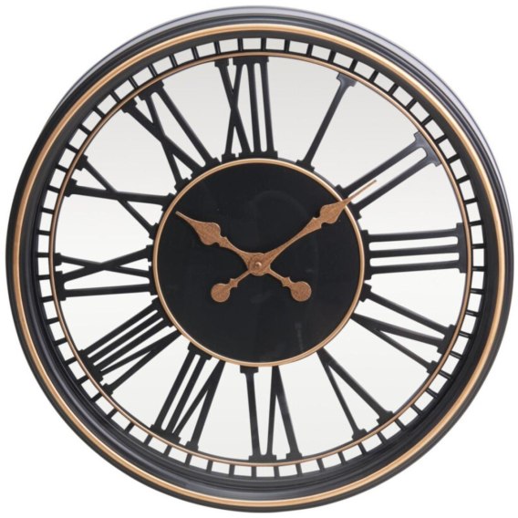 ZEGAR ŚCIENNY AŻUROWY CYFRY RZYMSKIE 48,5CM CZARNO ZŁOTY