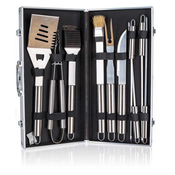 10-częściowy zestaw przyborów do grillowania w luksusowej walizce aluminiowej
