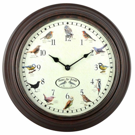 Jeżeli poszukujesz oryginalnego prezentu dla miłośnika przyrody to ten zegar jest właśnie dla Ciebie. Zegar z odgłosami ptaków renomowanej holenderskiej firmy Esschert Design. Markę wyróżnia jakość i ponadczasowy design. Zegar został skonstruowany tak, aby co godzinę odtwarzał inny dźwięk, odgłos danego ptaka. Usłyszysz 12 różnych dźwięków takich ptaków jak: Zięba, Kukułka, Bogatka, Dzięcioł, Drozd, Płomykówka, Strzyżyk, Kos, Modraszka, Słowik, Rudzik, Puszczyk.