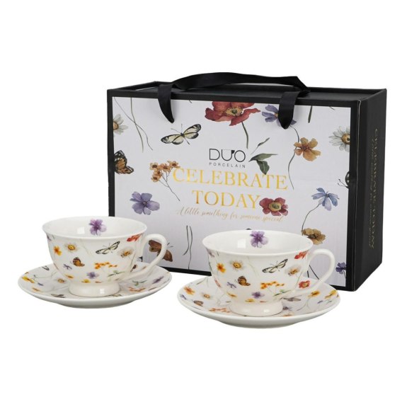 filiżanki MARGARET, filiżanki porcelanowe, filiżanki w kwiaty, filiżanki z motylami, filiżanki ze spodkiem, zestaw filiżanek, filiżanki royal, filiżanki prezentowe, porcelana DUO
