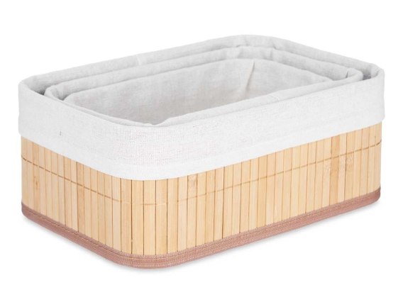 koszyki bambusowe, zestaw organizerów, kosze z tkaniną, koszyki do łazienki, pojemniki do szafy, organizer bambusowy, pojemnik na kosmetyki, eko koszyk