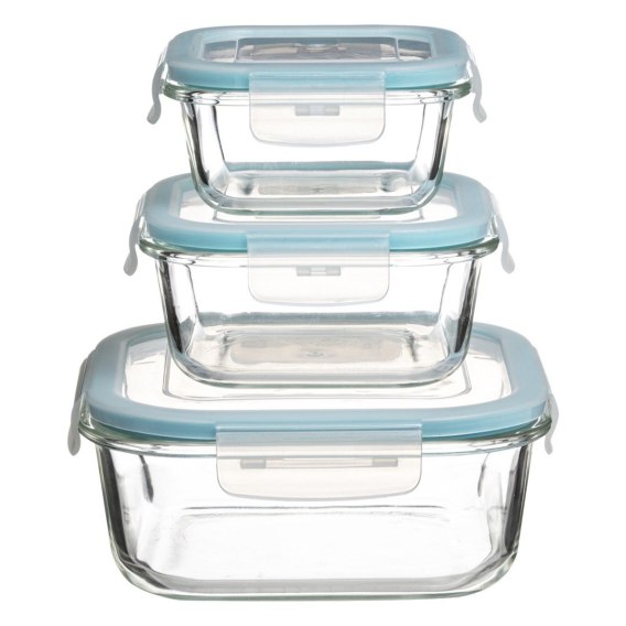 Komplet 3 pojemników do przechowywania żywności, które doskonale sprawdzą się w domu, a także w pracy bądź podróży. Pojemniki na żywność ułatwią zachowanie porządku w lodówce i w zamrażarce. Można je przenieść prosto z lodówki do kuchenki mikrofalowej, ponieważ są odporne zarówno na ciepło, jak i zimno. Przezroczyste szkło umożliwia szybki podgląd zawartości bez konieczności otwierania pojemników. Wykorzystane do produkcji pokrywek tworzywo nie zawiera szkodliwych substancji BPA. Pojemniki są odpowiednie do stosowania w mikrofalówce, piekarniku oraz zmywarce, są hermetycznie zamykane, odporne na uderzania i odpryski oraz estetycznie wykonane.