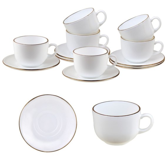 Zestaw 6 filiżanek 12 elementów, okrągłe, opal, białe ze złotym zdobieniem, KINGHOFF KH-1929