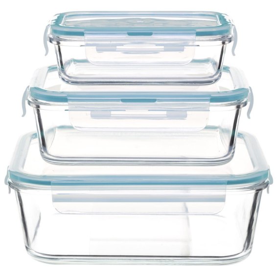 Komplet 3 pojemników do przechowywania żywności, które doskonale sprawdzą się w domu, a także w pracy bądź podróży. Pojemniki na żywność ułatwią zachowanie porządku w lodówce i w zamrażarce. Można je przenieść prosto z lodówki do kuchenki mikrofalowej, ponieważ są odporne zarówno na ciepło, jak i zimno. Przezroczyste szkło umożliwia szybki podgląd zawartości bez konieczności otwierania pojemników. Wykorzystane do produkcji pokrywek tworzywo nie zawiera szkodliwych substancji BPA. Pojemniki są odpowiednie do stosowania w mikrofalówce, piekarniku oraz zmywarce, są hermetycznie zamykane, odporne na uderzania i odpryski oraz estetycznie wykonane.