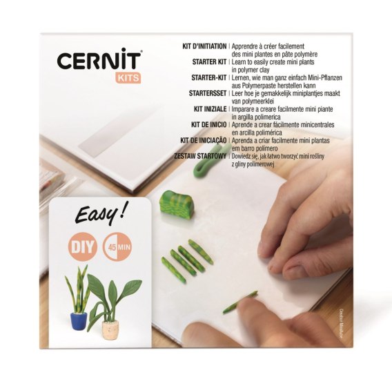Zawartość: 4 kostki glinki polimerowej Cernit® w odpowiednich kolorach (po 25 g każda), 1 patyczek, 1 ostrze do modeliny, ulotka krok po kroku z instrukcjami.