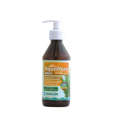 Podstawowy nawóz dla roślin akwariowych w zbiornikach z rybami zawierający niezbędne biopierwiastki: K, Mg, Fe, Cu, Co, Zn, B, V, Mn, F, Se, Ni, Mo. Jest przeznaczony głównie do stosowania w dojrzałych zbiornikach z rybami - nie zawiera azotanów i fosforanów. Aquaflora basic zawiera metale w postaci chelatów trwałych w wodzie w szerokim zakresie wartości pH i twardości.
